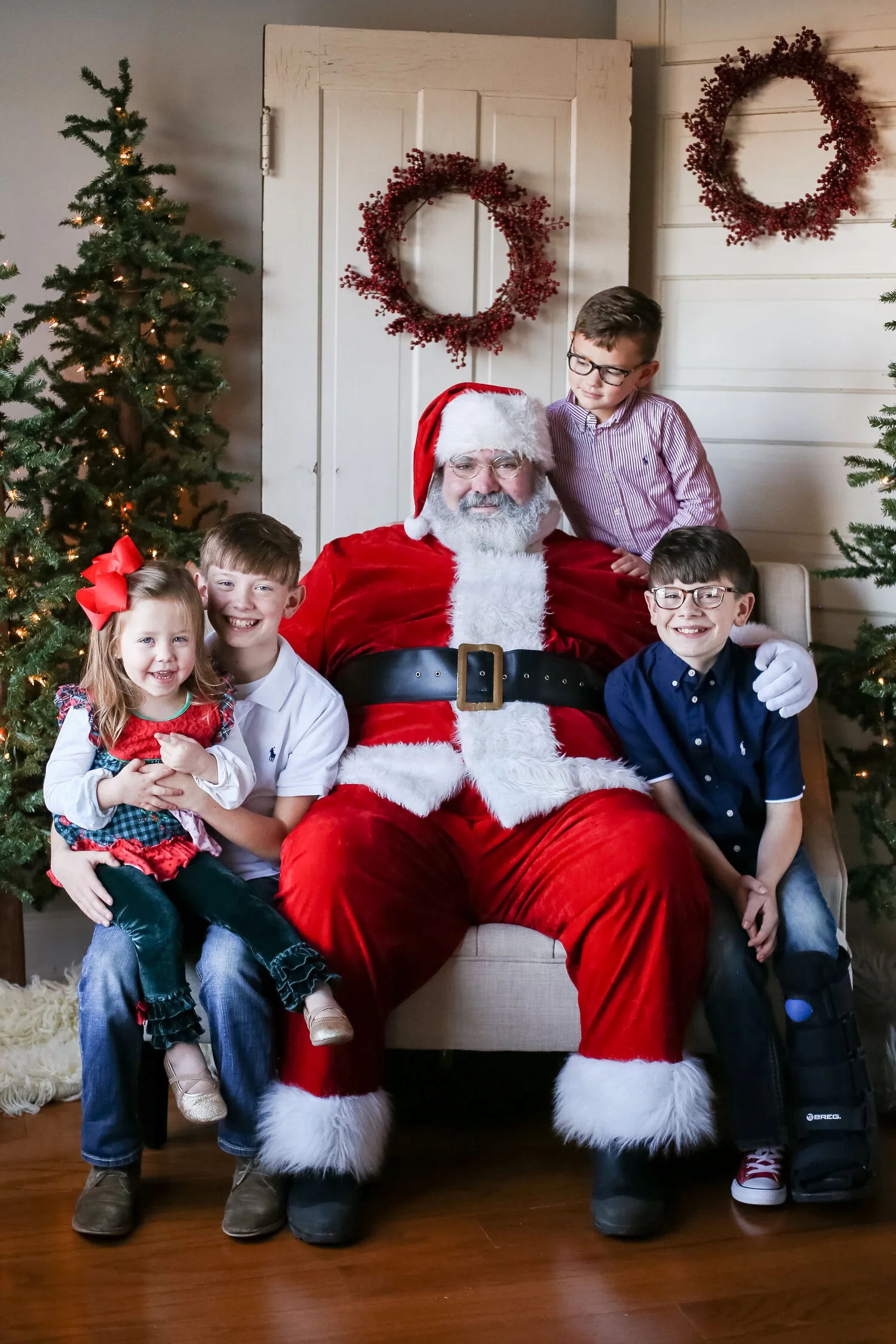 Styles of all types - from your monogrammed Sunday best to Christmas pjs - are welcome for your child’s mini session with Santa. The set will be decorations will be simple and classic ... enough to invoke the warmth of the holiday, but not too much to take away from the expressions on your children's faces.